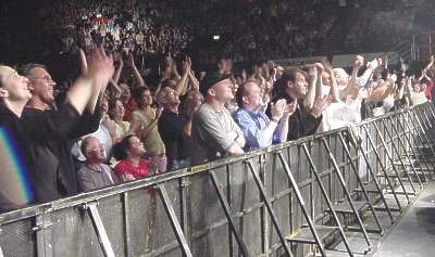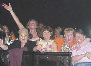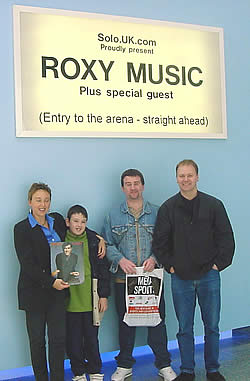 Roxy Music Tour 2001 On the UK tour your intrepid reporter snapped away at both band and crowd. Opposite are the results. Some of you will recognise yourselves or others. Those who frequent the discussion forum but cannot put faces to names can spend hours attempting to work out who might be who. If anyone pictured actually wants to be named then let us know and we will be happy to credit you. But, if you were supposed to be off-work ill but instead were following Roxy Music round the country don't blame us! And for those of you who have waited a long time to see Roxy Music, spare a thought for the lady in the top picture. She's been waiting 18 years to achieve membership of the Roxy Music 100 Club. Yup, Dublin was her 100th Roxy Music concert! Hopefully some more people will be added as we wade our way through the hundreds of photos taken during the tour.